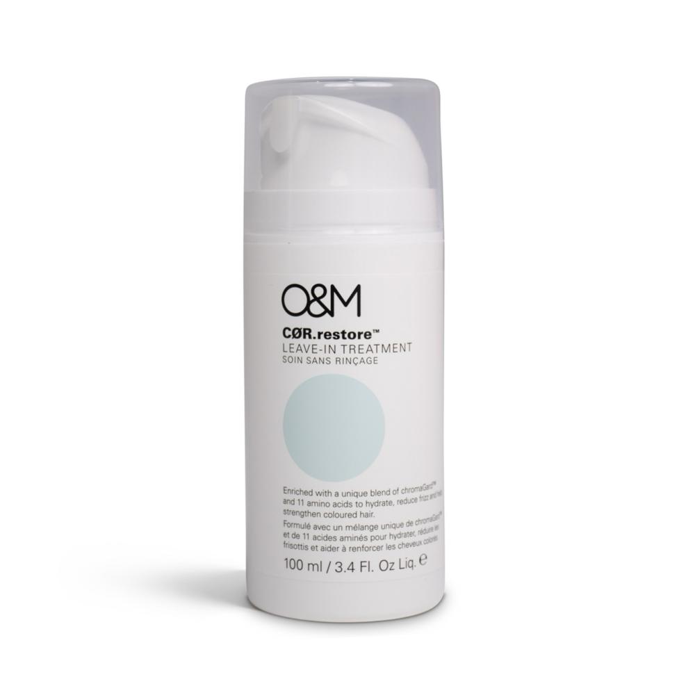 O&M CØR.restore Leave-In Treatment: a repair-focused formula that rebuilds hair’s internal structure and locks in vibrancy.